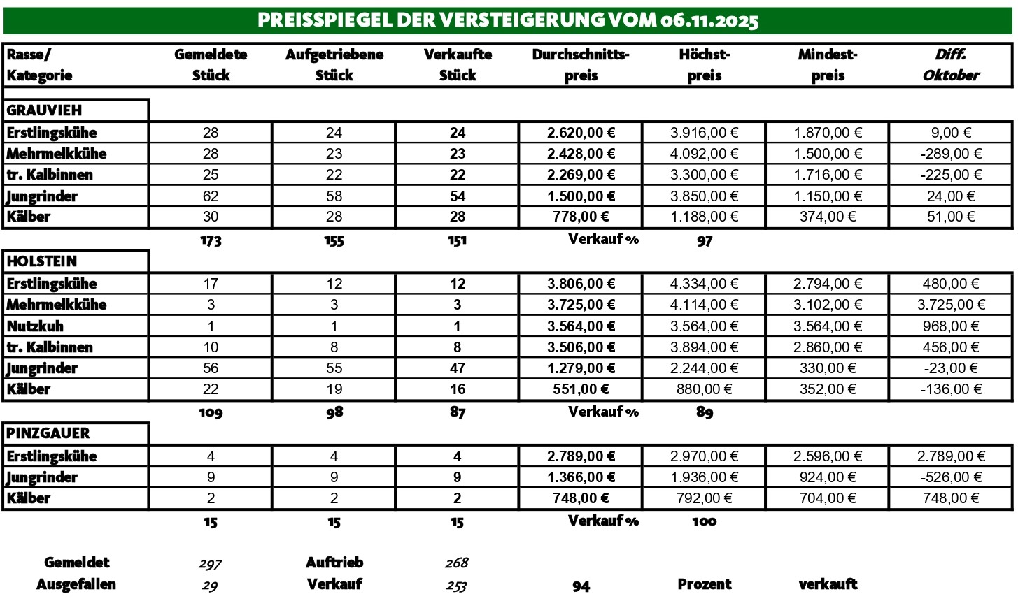 Die November Versteigerung war eine zufriedenstellende Versteigerung für alle Verkäufer. Wie immer wurden für Spitzentiere lukrative Preise bezahlt.