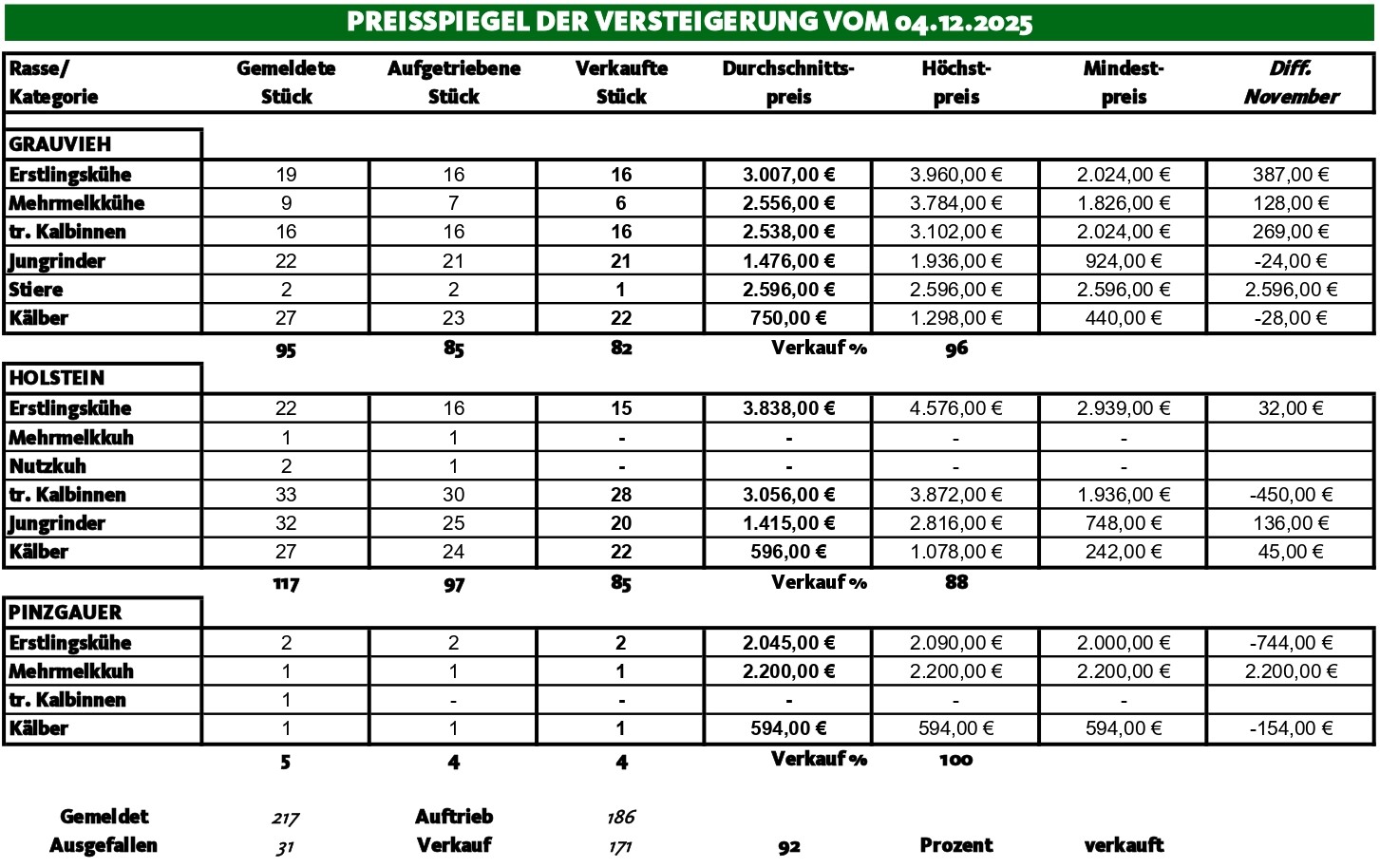 Die Dezember Versteigerung war eine sehr erfolgreiche Versteigerung. Nach wie vor sind Rinder jeder Altersgruppe gefragt. Besonders bei Rinder mit guter Qualität ist die Nachfrage groß und der Preis sehr erfreulich.